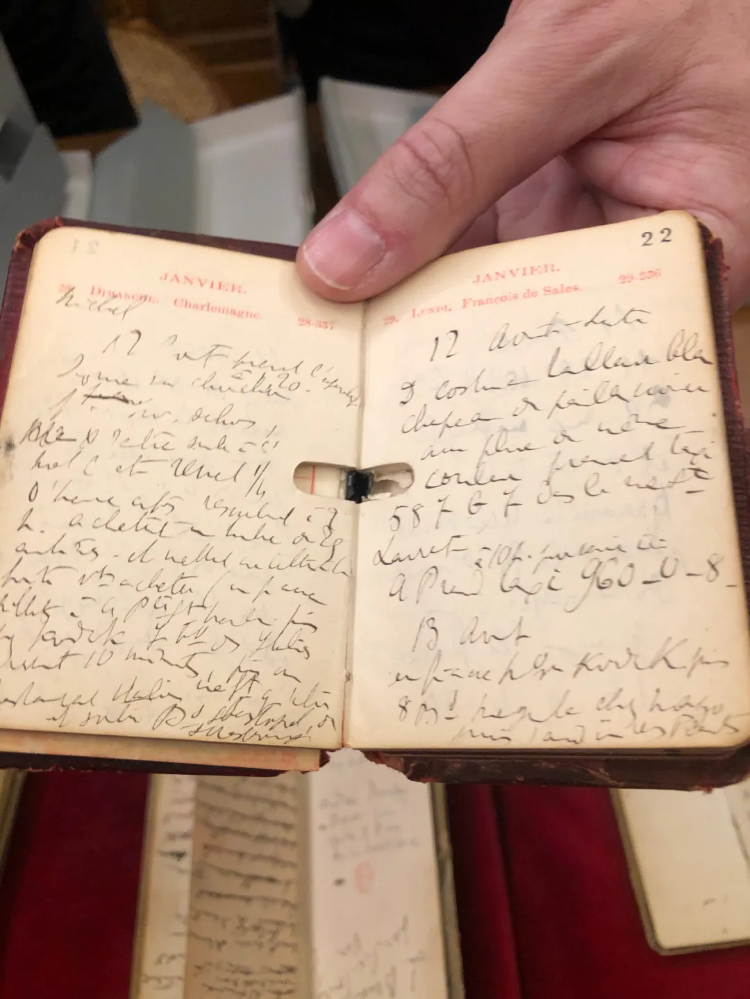 “我们会整理出版的,会的。”Guillaume Fau先生轻声安慰我。他收起小本子,然后小心翼翼地捧出一本厚厚的笔记本:“这个,就是《追忆似水年华》的手稿了。”
